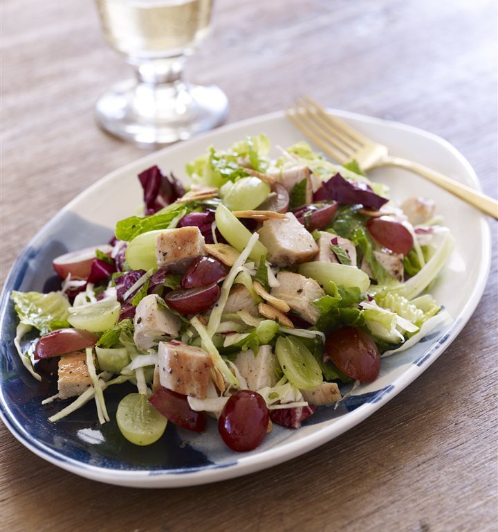 1. Turn to the summer host’s best friend — an entrée salad that’s cool, crunchy and refreshing, like the Crispy Garlic Chicken Chopped Salad (recipe follows) that tickles tastebuds with a delightful contrast of sweet California grapes and savory toasted garlic.