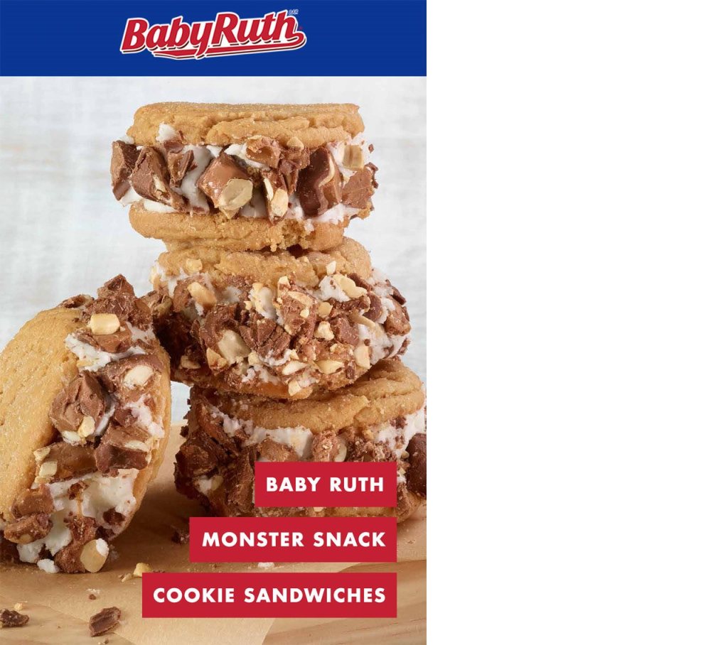Salty, creamy and oh so tasty, make monster cookie treats and any ordinary day is transformed into a special celebration. Vanilla ice cream sandwiched between two peanut butter cookies and then rolled in chopped Baby Ruth candy bars that stick to the exposed ice cream are sure to inspire a lip-smacking smile.
