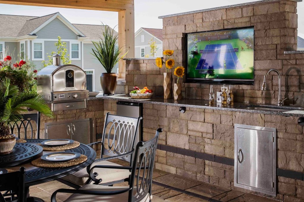 Integrating technology into outdoor spaces is becoming necessary to carry out daily functions. Incorporate heating or lighting into an outdoor area, as well as Wi-Fi and easily accessible electrical outlets for a fully functional space that can support more activities.