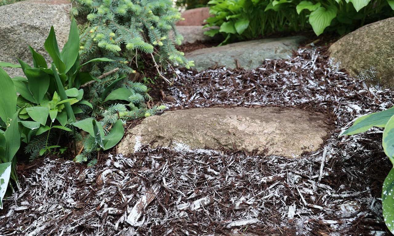 Maintenance of mulched areas can be a challenge with thunderstorms, critters, traffic and falling leaves. To keep landscaped areas looking beautiful and minimize seasonal maintenance, Thompson uses NorthRock® Landscape Loc Mulch & Rock Bond, an environmentally friendly compound that can be applied to keep mulch and landscape rock locked in place.